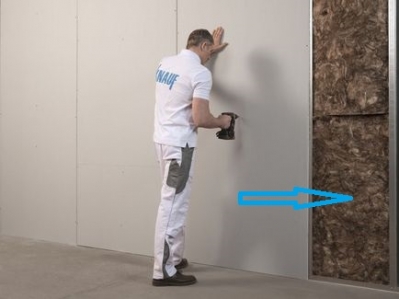 Шаг 6. Покрытие рамы первым слоем листов KNAUF на другой стороне