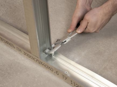 Шаг 4. Крепление профилей металлическим просекателем обжимного инструмента